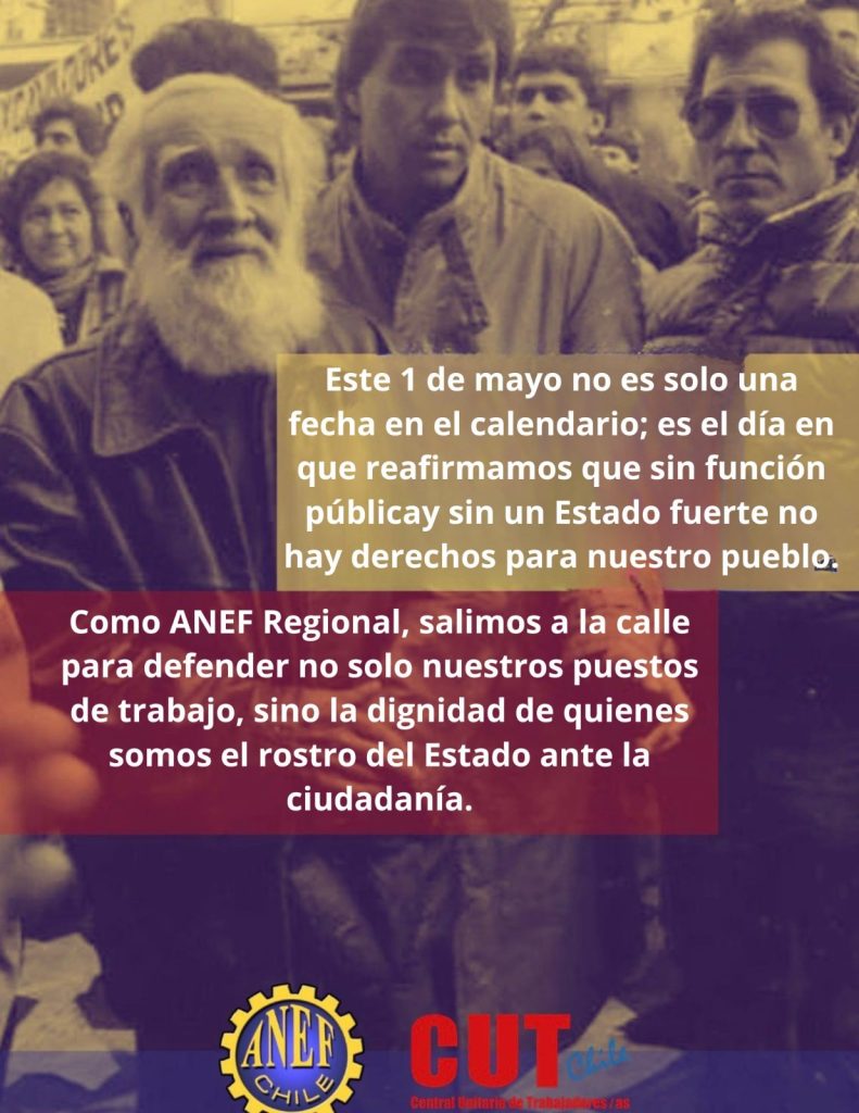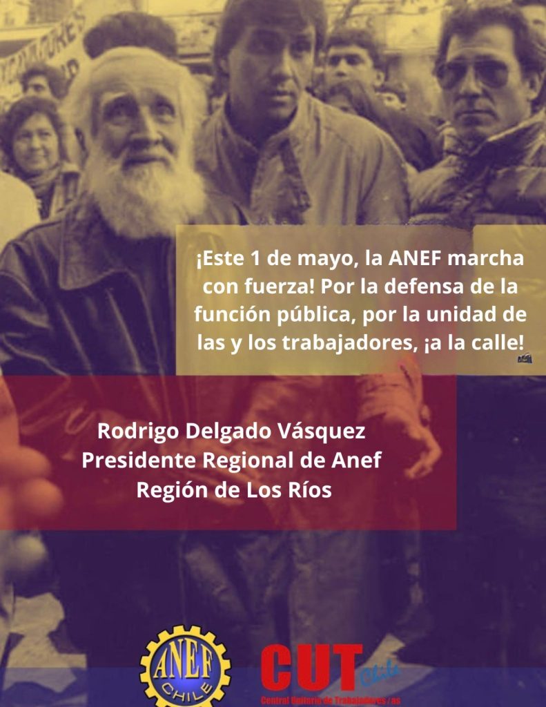 La dirigencia de ANEF Los Ríos junto a la CUT de Valdivia y diversos gremios de la región convocaron a una marcha masiva para este viernes 1 de mayo, en protesta por los recortes presupuestarios y despidos anunciados por el Gobierno de José Antonio Kast.